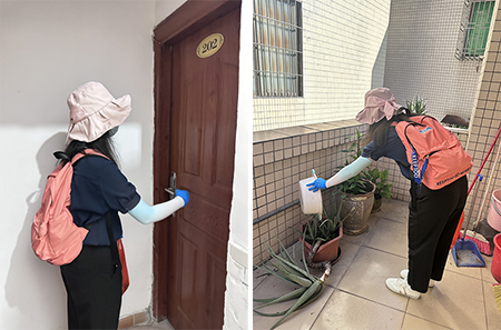 党员们被划分为志愿服务小组,跟随当地村委工作人员的脚步,上门逐户排查卫生隐患,了解登记住户种养水生植物情况和健康状况,宣传讲解基孔肯雅热疫情防控知识,并协助清理公共区域积水,打扫堆积的垃圾杂物,向卫生死角喷洒灭蚊虫剂。