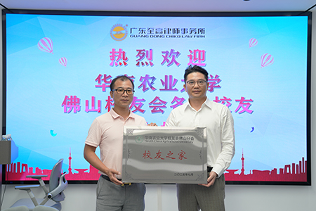 活动最后,在大家的瞩目见证下,伴随着掌声雷动,郭华寿副主任代表我所正式从钟乃嵘副秘书长手中接过华农校友会佛山分会授予的“校友之家”牌匾,承载着一份满满的信任,标志着我所与华农佛山校友会的深度合作迈入新阶段。
