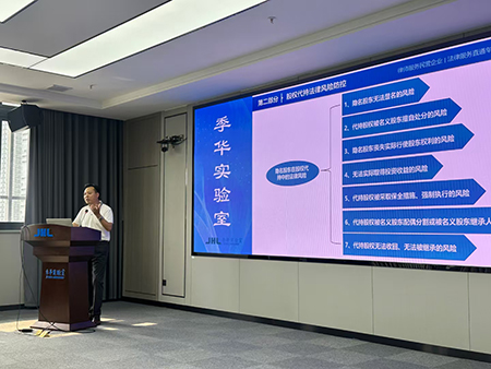 徐建民律师结合其二十多年的执业经验,通过真实的案例,用通俗易懂的语言,从企业劳动用工、股东股权代持、企业签署的商事合同、企业公章管理等四个方面,讲授企业在日常经营过程中经常面临的风险因素。