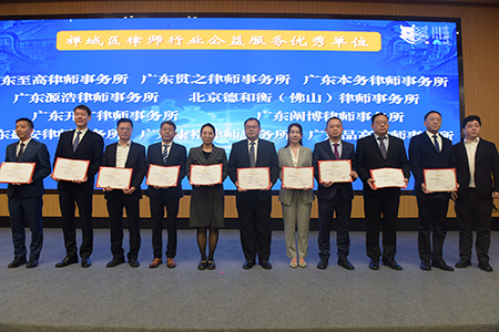 我所获评“禅城区律师行业公益服务优秀单位”称号,是继去年之后再一次获此殊荣。我所合伙人、副主任招伟松律师代表上台领奖。