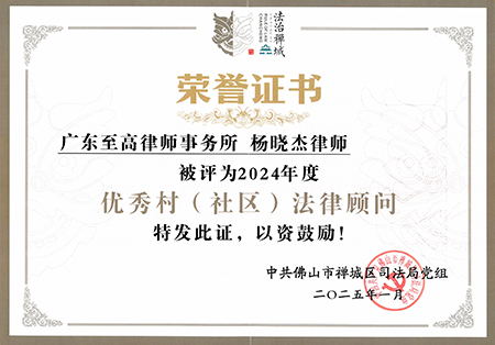 我所团支部书记杨晓杰律师因工作表现出色,荣获“禅城区优秀村(社区)法律顾问”奖项。